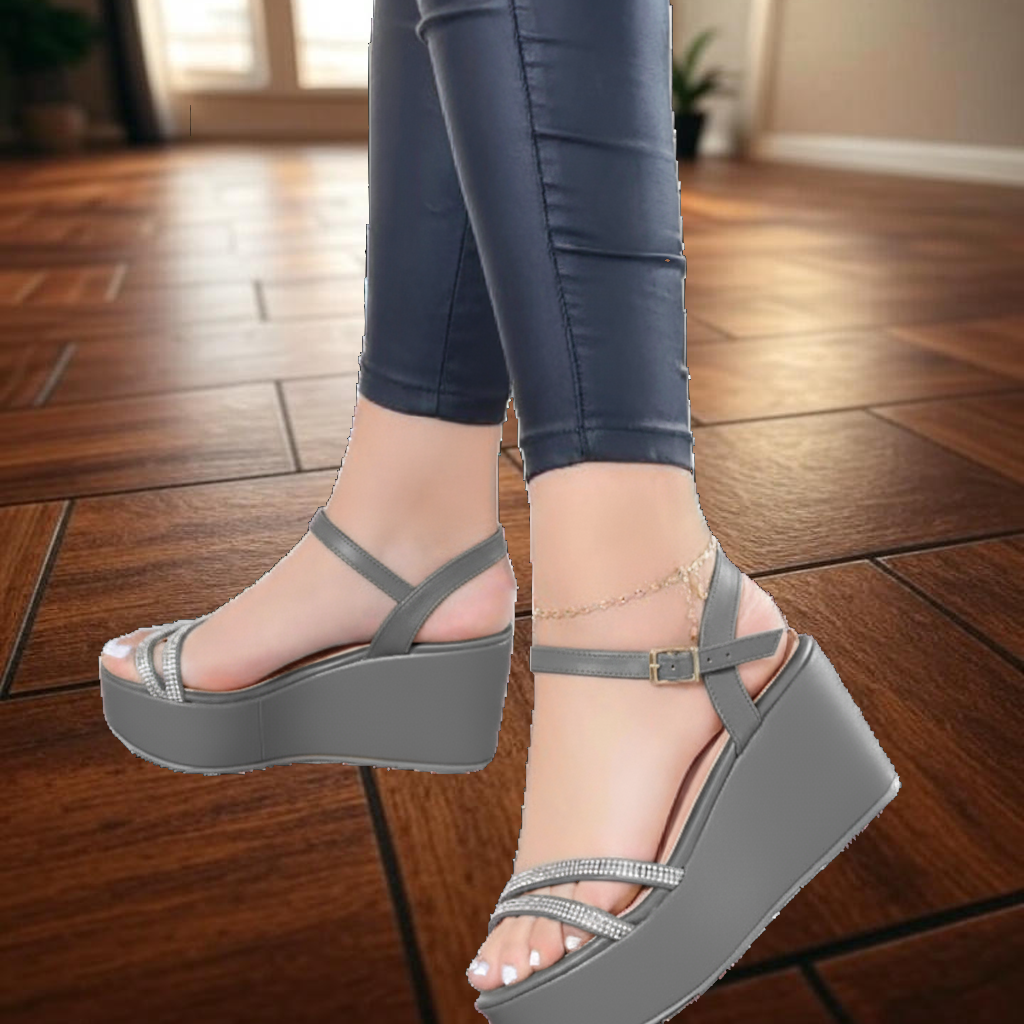 Lo primero que te robará el aliento son esas dos tiritas que cruzan el pie. Están cubiertas de pequeños cristales que capturan la luz de una forma increíble. ¡Brillan con cada paso que das! Es un detalle súper glamoroso y delicado que hará que todo el mundo te pregunte de dónde son tus sandalias.